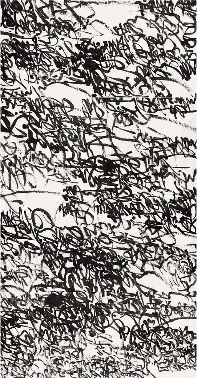 “乱书”的核心突破在于彻底打破传统书法“纵有行、横有列”的章法铁律,以及笔画与字间“忌讳无意义交叉重叠”的禁忌。字与字、行与行相互交织、叠加、渗透,墨色浓淡枯湿对比强烈,形成极具视觉冲击力的“混沌整体”。从“文字书写艺术”转向“笔墨自体探索”,将书写从“字义”与“人格”的承载中解放出来。继承徐渭、黄宾虹等对秩序的反叛基因,将传统“书为心画”推向极致,侧重创作过程的“表演性”“实验性”。华南师范大学陈志平教授评价:“乱书是传统书法在当代文化语境中的必然变形。”